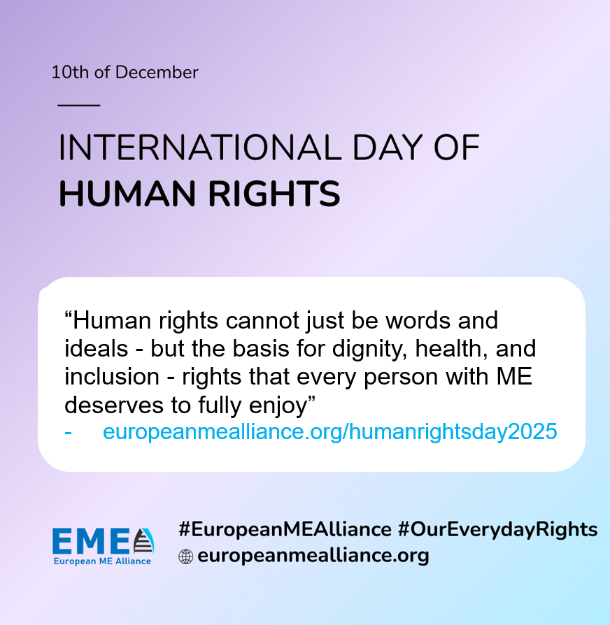 Human rights cannot just be words and ideals – they must be the basis for dignity, health, and inclusion - rights that every person with ME deserves to fully enjoy.